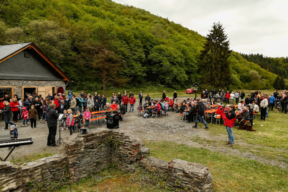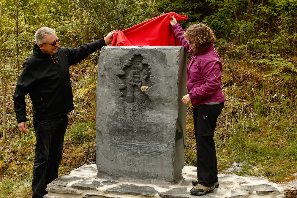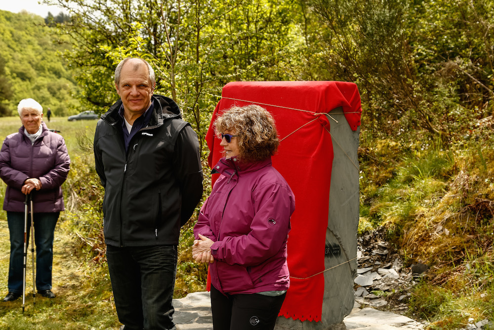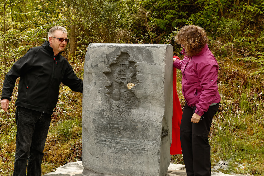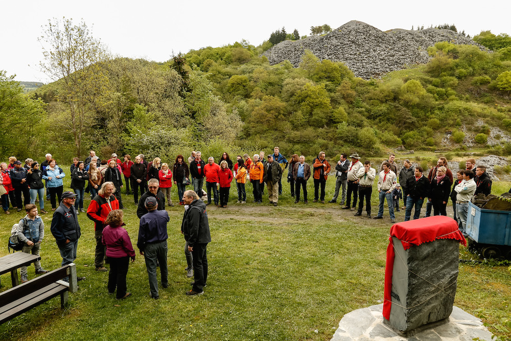 Sponsoring der Firma Brillen-Müller ermöglicht die Aufstellung einer Steinmetzarbeit mit dem sagenumwobenen Kaulenmännchen am Schiefergrubenwanderweg im Kaulenbachtal. Steinmetz und Bildhauer Friedhelm Weber aus Ulmen entwirft ansprechendes Motiv.