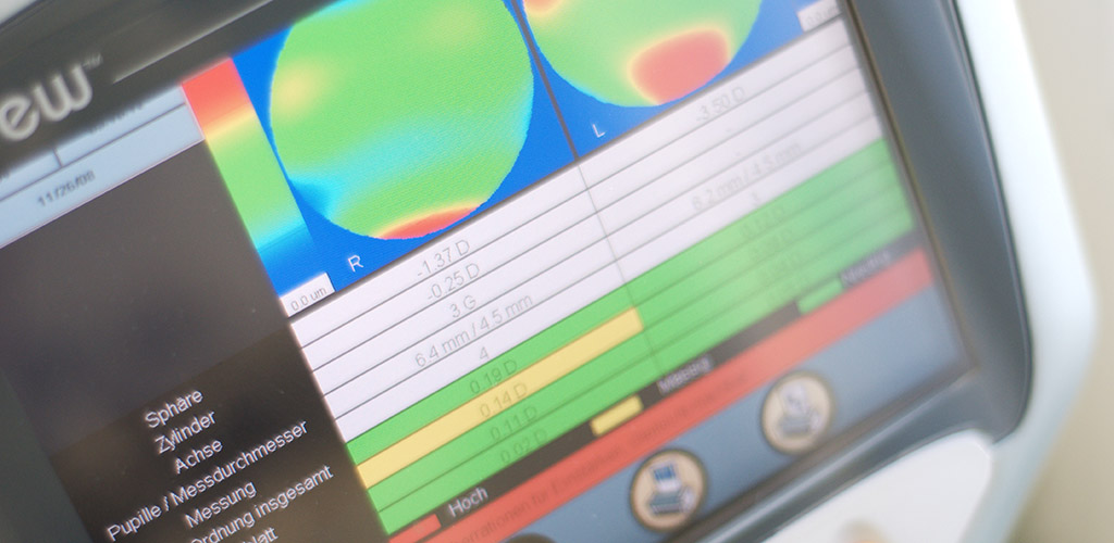 Darüber hinaus werden für die volle optische Leistungsfähigkeit des neuen Brillenglases viele wichtige Anpassungsvoraussetzungen der Brille mit einbezogen: der Abstand der Brille zum Auge, die Verkippungswinkel der Brillengläser in horizontaler und vertikaler Richtung, sowie entscheidende anatomische Eigenschaften des Brillenträgers selbst, wie zum Beispiel der Augenabstand, der voneinander getrennt vermessen wird.
